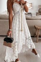 Damen Häkelfransen Spitzenkleid in Weiß - Eleganter Sommerlook