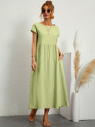 Genießen Sie den Zauber des Frühlings mit unserem sorgfältig entworfenen, eleganten Kleid mit Rundhalsausschnitt, das Komfort und Stil für Ihre Garderobe perfekt vereint. Ideal für lässige Spaziergänge im Park oder gemütliche Brunch-Treffen, wird dieses Kleid Ihr zuverlässiger Begleiter sein und jedem Ihrer Schritte zeitlosen Charme verleihen.
