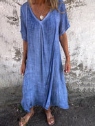 Erleben Sie die Leichtigkeit des Sommers mit diesem Kleid, in dem Komfort auf modisches Flair trifft. Aus leichtem Stoff gefertigt, schmiegt es sich sanft an Ihre Figur und sorgt für optimalen Komfort an heißen Tagen. Die fließende Silhouette und das dezente Muster verleihen dem Kleid einen eleganten Touch und machen es sowohl für formelle Anlässe als auch für Freizeitausflüge perfekt. Durch sein vielseitiges Design und die neutrale Farbe lässt sich dieses Kleid leicht mit Accessoires kombinieren und ermöglicht es Ihnen, mühelos verschiedene Outfits zusammenzustellen. Es ist ein absolutes Muss für Ihre Sommergarderobe und bietet sowohl Eleganz als auch Zweckmäßigkeit.