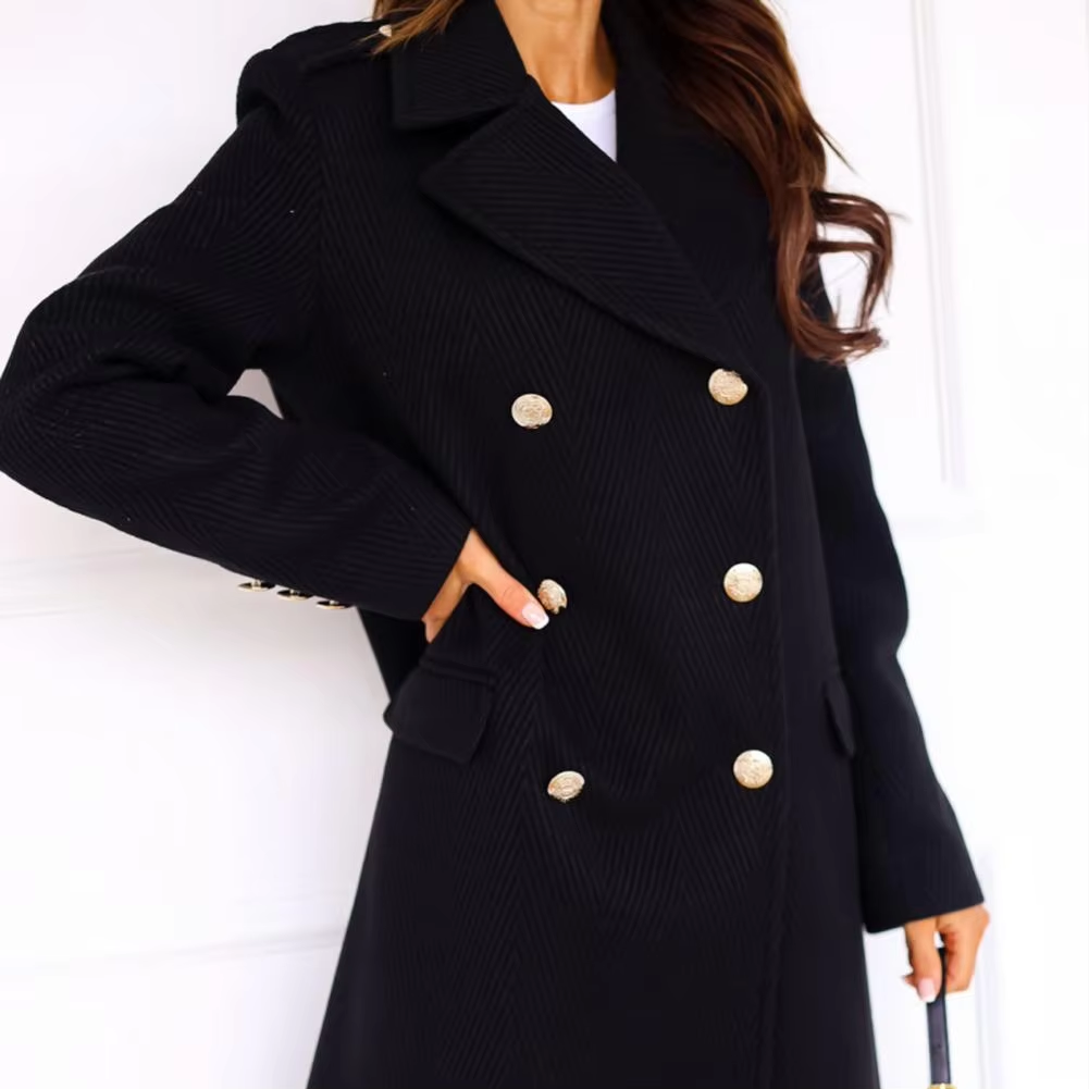 Eleganter Damenmantel - Klassisches Design mit Knöpfen und Taschen