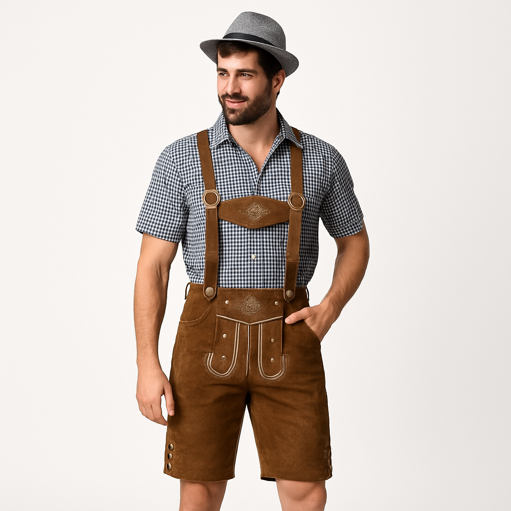 Tauchen Sie ein in die bayerische Tradition mit unserer handgefertigten Lederhose aus hochwertigem Echtleder. Diese klassische Tracht verbindet traditionelles Handwerk mit modernem Komfort und macht Sie zum absoluten Hingucker auf jedem Volksfest, der Wiesn oder anderen festlichen Anlässen.
